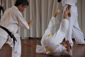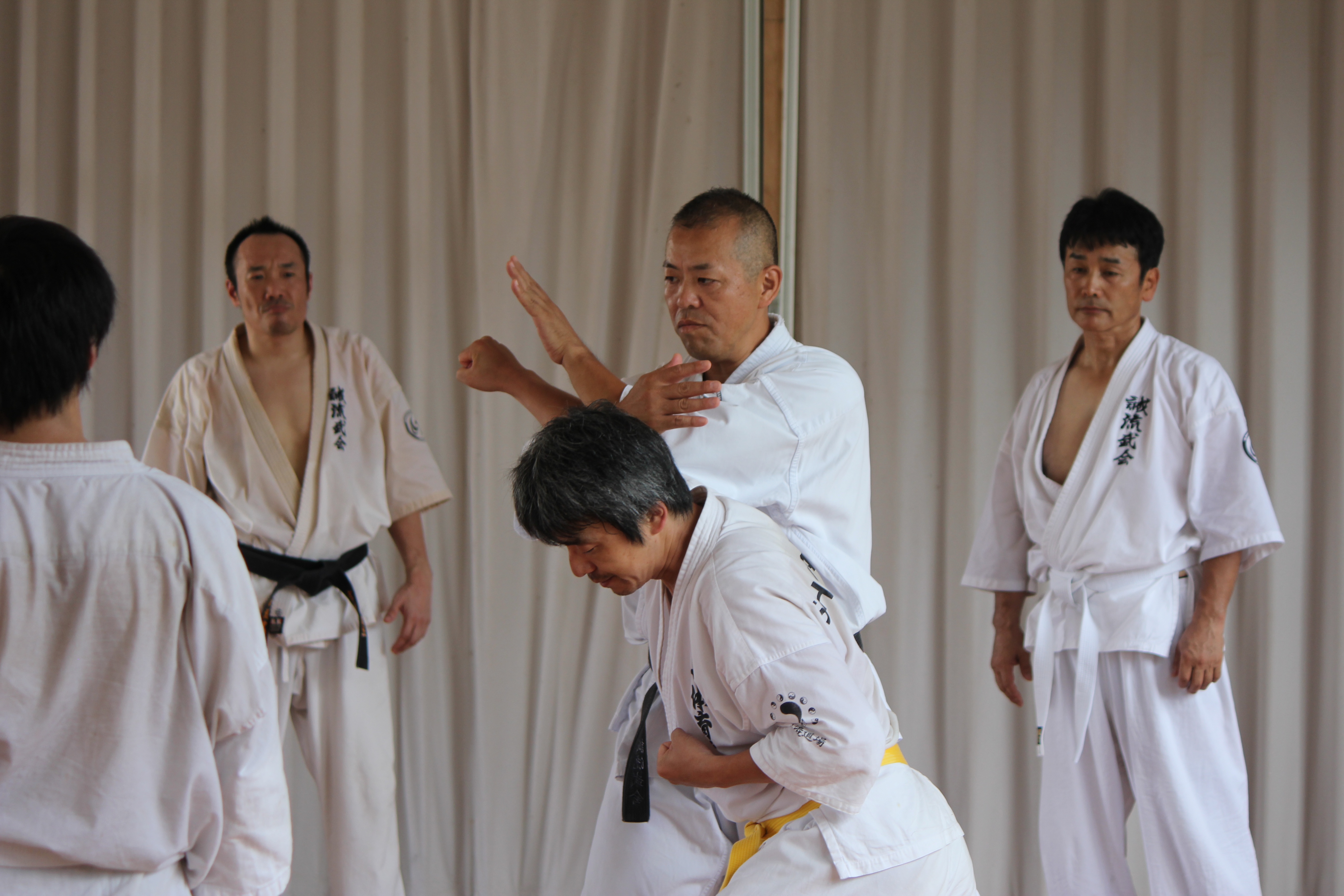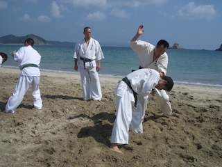 しかしそこは黒帯である。稽古を続けているうちに突然意識が変わり、こちらが驚くほど動きが良くなってくる場合がほとんである。もちろん中には何を思ったか、最初の審査でまったく動けなかった自分のことは棚に上げて、本来黒帯を他流派で持っている自分が低い位置の色帯になったことに嫌気をさしてやめていく者がいるが、それは少数である。